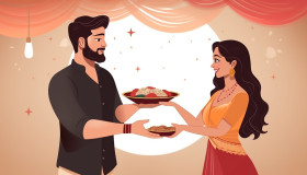 One man and one woman standing up for vedas raksha bandhan concept