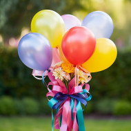 Colorful balloon bouquet with ribbon