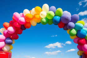 balloons arch bright blue sky colorful celebration party festive fun happy joy joyride delight enjoyment cheer happiness glee jubilation merry mirth revelryImagine Buddy