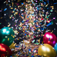 Colorful balloons and confetti floating down