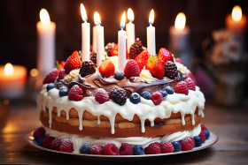 birthday cake lit candles celebration party dessert sweet partyhat balloon streamers confetti gift happy fun festive joy love laughter happiness special occasion celebration delicious yummy frostingImagine Buddy