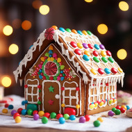 gingerbread house decorated christmas holiday sweet candy confectionery dessert food treat festive winter delicious yummy colorful creative imaginative elaborateImagine Buddy