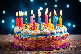 Birthday cake candles glowing brightly