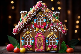 gingerbread house decoration christmas holiday sweet candy house edible art winter snow festive whimsical fairy tale cookie frosting icing candy canes gumdrops sprinklesImagine Buddy