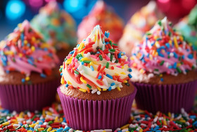 cupcakes decorated toppers food dessert sweet party birthday celebration colorful festive sprinkles frosting icing sugar vanilla chocolate strawberry rainbow unicorn mermaid dinosaur princessImagine Buddy