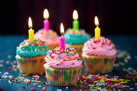 cupcakes festive sprinkles candles party celebration holiday birthday dessert sweet food cake frosting icing decoration colorful fun happy cheerful delicious tasty yummyImagine Buddy