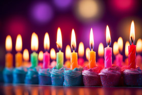 brightly lit birthday candles cake celebration cheer colorful festive flame flickering fire glow golden happy hope light make a wish magic molten music orange party red romance shimmeringImagine Buddy