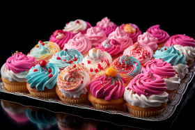 cupcakes tray baked iced sweet dessert delicious party celebration birthday dessert table sweets food sugary treats yummy colorful deliciousness indulgence frosting buttercream sprinkles chocolate vanilla strawberry rainbowImagine Buddy