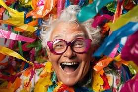 joy lady streamers confetti celebration party happy fun birthday new year carnival festival celebration excitement happiness laughter cheer fun happy womanImagine Buddy