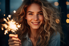 celebration sparkler stylish woman party birthday new year holiday festive happy joy excitement glamor fashion luxury lifestyle beauty portrait female lifestyle occasion event festiveImagine Buddy