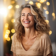 lady radiant smile festivities party celebration happy joyful cheerful excited anticipation eager glamour elegance beauty fashion style dress outfitImagine Buddy