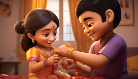 raksha bandhan rakhi brother sister love family bond celebration tradition festival colorful happy smiling handmade gift decor flowers nature indian hindu goddess lakshmi saraswati bindi bangles lehenga kurta turban aarti puja prayer meditation spirituality ai images ai prompts imaginebuddyImagine Buddy