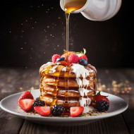 restaurant model chef dessert honey drizzling sweets food culinary garnish plating gourmet restaurant kitchen bakery pastry confection indulgence treat sweetness flavor aroma presentation creativity art finesse detail close-up macro selective focus bokeh professional expertise passion enjoymentImagine Buddy
