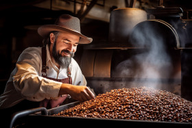 restaurant model coffee beans roasting chef barista culinary gourmet expert artisan professional skilled talented technique process aroma fragrance flavor fresh gourmet beans roasting coffeeshop baristaImagine Buddy