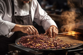 restaurant model coffee beans roasting chef barista culinary gourmet expert artisan professional skilled talented technique process aroma fragrance flavor fresh gourmet beans roasting coffeeshop baristaImagine Buddy