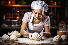 restaurant model baking breadmaking chef culinary dough flour food hands kitchen kneading preparation process recipe woman cooking homemade artisan bakery bread cheflife culinaryarts doughkneading flourdusted foodie handson kitchenlife kneadingdough preparation process recipe womanchefImagine Buddy