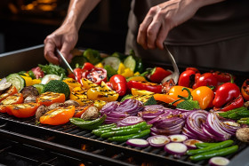 restaurant model culinary chef cooking grilling vegetables salad healthy fresh preparation kitchen professional expertise skills gourmet gastronomy food nutrition diet lifestyle wellness barbecue chargrilled flame-kissed smoky flavorful nutritious colorful vibrant appetizing mouthwatering delectable gourmetImagine Buddy