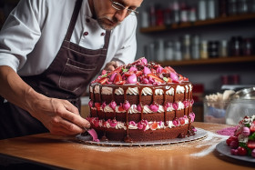 restaurant model pastry dessert baking chef kitchen cake decoration frosting precision detail artistry creativity culinary food gourmet professional skilled talented meticulous focused attentive passionate artistic elegant beautiful delicious tempting appetizing celebration birthday party event cateringImagine Buddy