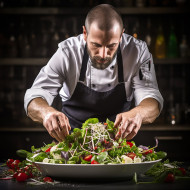 restaurant model chef cooking cuisine culinary food garnish gourmet gourmet greens healthy herbs kitchen garnishing meal nutrition organic preparation salad fresh gourmet healthy organic preparation professional restaurant saladImagine Buddy