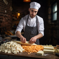 restaurant model cooking chef kitchen preparation pizza cheese grating mozzarella parmesan food meal italian fresh homemade culinary ingredients recipe baking dough sauce toppings basil oregano pepperoni sausage vegetarian healthy delicious tasty aroma hunger satisfaction enjoymentImagine Buddy
