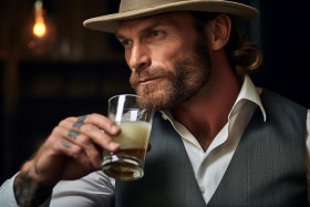 Stylish man enjoys a refreshing moscow mule