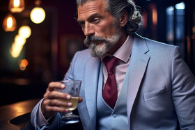 restaurant models man gentleman sophisticated stylish elegant cocktail moscow mule drink refreshment bar nightlife leisure enjoyment relaxation pleasure happiness copper mug ice lime ginger vodka refreshing stylish trendy urban sophisticated classy upscale nightlife bar restaurant social friends conversation enjoyment leisure relaxationImagine Buddy