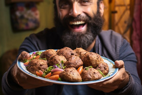 Stylish man enjoys delicious middle eastern falafel
