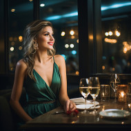 restaurant models fashion luxury style elegance beauty sophistication glamour dinner woman lady female gown evening gown dress formalwear jewelry makeup hair ambiance candlelight romance celebration success wealth happiness confidence lifestyleImagine Buddy