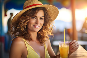 restaurant models beach bar woman cocktail summer vacation relaxation tropical fun happiness carefree beautiful attractive stylish elegant carefree enjoyment leisure refreshment seaside waterfront shoreline coast ocean waves sunset tropical exotic paradise getaway escape blissImagine Buddy