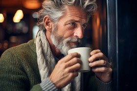 restaurant models man coffee cafe trendy stylish urban hipster sophisticated elegant relaxed enjoyment leisure beverage refreshment break social conversation friends meeting business casual lifestyle modern city culture atmosphere interior design architecture fashionImagine Buddy