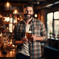 restaurant models man beer drink beverage alcohol craft glass handsome happy smile refreshment enjoyment relaxation leisure bar pub restaurant party celebration social friends lifestyle portrait close-up thirst-quenching refreshing cold summer outdoors casual stylish trendy modern adult maleImagine Buddy