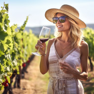 Woman savors exquisite wine during vineyard excursion