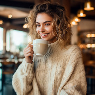 restaurant models woman cafe coffee cappuccino drink beverage enjoyment relaxation leisure lifestyle european style elegance fashion beauty portrait indoors bistro coffeeshop breakfast brunch afternoon casual social friends conversation meeting date romance charm atmosphere ambiance cozy invitingImagine Buddy
