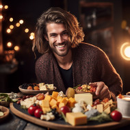 restaurant models gourmet appetizer cheese platter gourmet snacks party food cuisine delicious taste eating man male model fashion stylish trendy glasses beard indulgence enjoyment pleasure relaxation sophistication luxury lifestyle event celebration cateringImagine Buddy