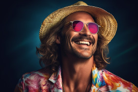 Stylish guy enjoys a refreshing fruity drink