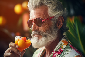 Stylish guy enjoys a refreshing fruity drink