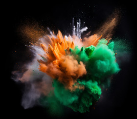 Flag of india in a powder explosion on a black background, independence day stock image, independence day ai prompt