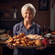 Elegant woman enjoying a delicious traditional american barbecue meal