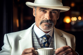 restaurant models man gentleman fashion style sophisticated elegant cappuccino coffee cafe breakfast morning relax enjoyment leisure break refreshment beverage hot drink caffeine cup mug tableImagine Buddy