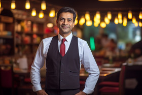 restaurant models manager leadership professional business success confident indian ethnicity ethnicity southasian restaurant food service industry workplace occupation career blur background portrait headshot adult male person people indoors work busy focused determined ambitious capable leaderImagine Buddy