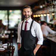 restaurant models leadership professional business chef cuisine culinary food service success manager supervisor teamwork staff restaurant cafe bistro dining hospitality industry workplace occupation career profession confident focused determined capable leader mentor businessman professional suit attire blurred backgroundImagine Buddy