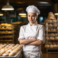 restaurant models chef woman pastry baking kitchen cooking professional skilled focused determined passionate confident success career ambition food dessert bakery restaurant workplace indoors blurred background portrait headshot occupation culinaryImagine Buddy