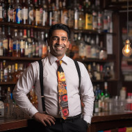 restaurant models bar manager bartender professional confident indian man workplace portrait business success leadership expertise service industry beverage alcohol cocktail restaurant nightlife entertainment blur background focus selectiveImagine Buddy