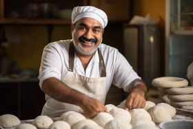 restaurant madel baker chef india indian man male person people portrait headshot smile friendly happy cheerful joyful positive emotions work occupation profession culinary kitchen bakery bread pastry dessert food blurred background ethnicity diversity culture tradition professionImagine Buddy