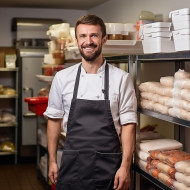 restaurant madel food service manager kitchen cooking professional staff portrait occupation career workplace business uniform apron cheerful friendly happy smiling confident success leadership teamwork blurred background indoor portrait man adult personImagine Buddy