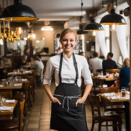 restaurant madel food beverage woman female friendly smiling professional confident competent leader teamwork customer service satisfaction success blurred background workplace indoors portrait headshot business casual attire happy cheerful welcoming approachable helpful attentive dedicatedImagine Buddy