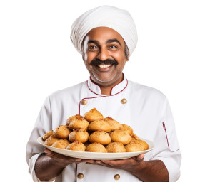 restaurant model chef indian man pastry bakery cooking baking professional friendly smiling happy isolated white background ethnicity diversity representation culinary cuisine food dessert bread cake uniform apron hat occupation career vocational skilled talent expertiseImagine Buddy