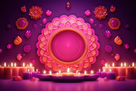 Diwali diya designs using radiant indian diyas against a vibrant pink backdrop