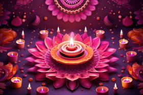 Diwali diya designs using radiant indian diyas against a vibrant pink backdrop