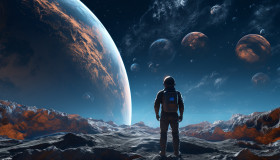 Human in space planet earth in view, midjourney ai art, ai art, midjourney free prompts